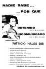 Afiche que se refiere a la detención de Patricio Hales Dib en septiembre de 1986.