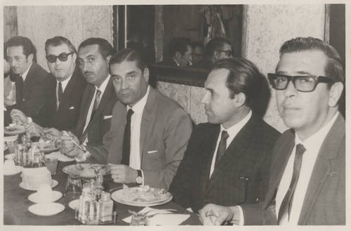 El ministro de Minería Alejandro Hales Jamarne en actividad con el subsecretario de Minería, Jaime Varela Chadwick. 1966