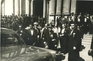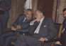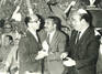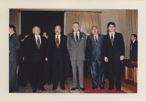 Los recién jurados ministros del gobierno del presidente Patricio Aylwin Azócar. De izquierda a derecha: Jorge Arrate Mac Niven, ministro de Educación; Germán Molina Valdivieso, ministro de Transportes y Telecomunicaciones; Alejandro Hales Jamarne, ministro de Minería; y Jorge Marshall Rivera, ministro de Economía. 28 Septiembre 1992