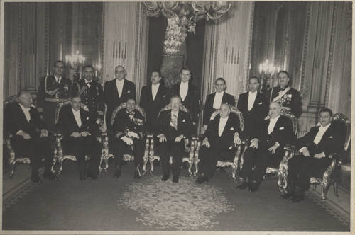 Pleno de ministros del gabinete del Presidente Ibáñez del Campo durante el día de la Cuenta Pública ante el Congreso Pleno. 21 Mayo 1954