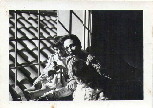 Adela Dib y sus hijos Jaime y Cecilia en la residencia de la Embajada de Chile en Bolivia durante el período en que Alejandro Hales se desempeñó como embajador de Chile en ese país. 1955