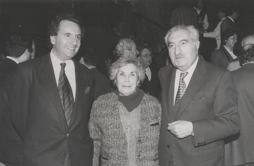 Alejandro Hales junto a su hijo, Patricio Hales y Hortensia Bussi viuda del ex presidente Salvador Allende. Fecha probable de la fotografía. 1990