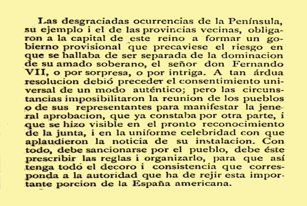 Este período abarca desde el 18 de septiembre de 1810, fecha de instalación de la Primera Junta de Gobierno, hasta la instauración del primer Congreso Nacional, el 4 de julio de 1811.