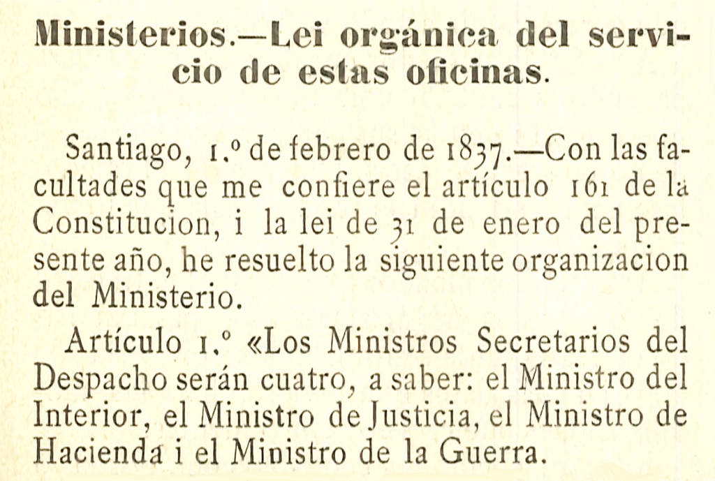 En la primera de ellas, se caracteriza por el fuerte presidencialismo consagrado en la carta de 1833, donde la figura del Presidente de la República acumula una importante cuota de poder y de prerrogativas en desmedro del Congreso Nacional.