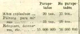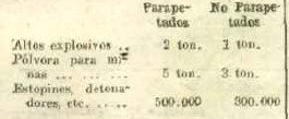 Pólvora sin humo. -20 Kg.- Regueros de 5 cms. de ancho con 6 mts. de separación.