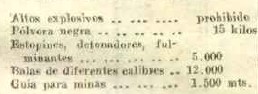 Prohíbese guardar cerca de los polvorines o depósitos de explosivos o bodegas, tubos de oxígeno, hidrógeno o acetileno.