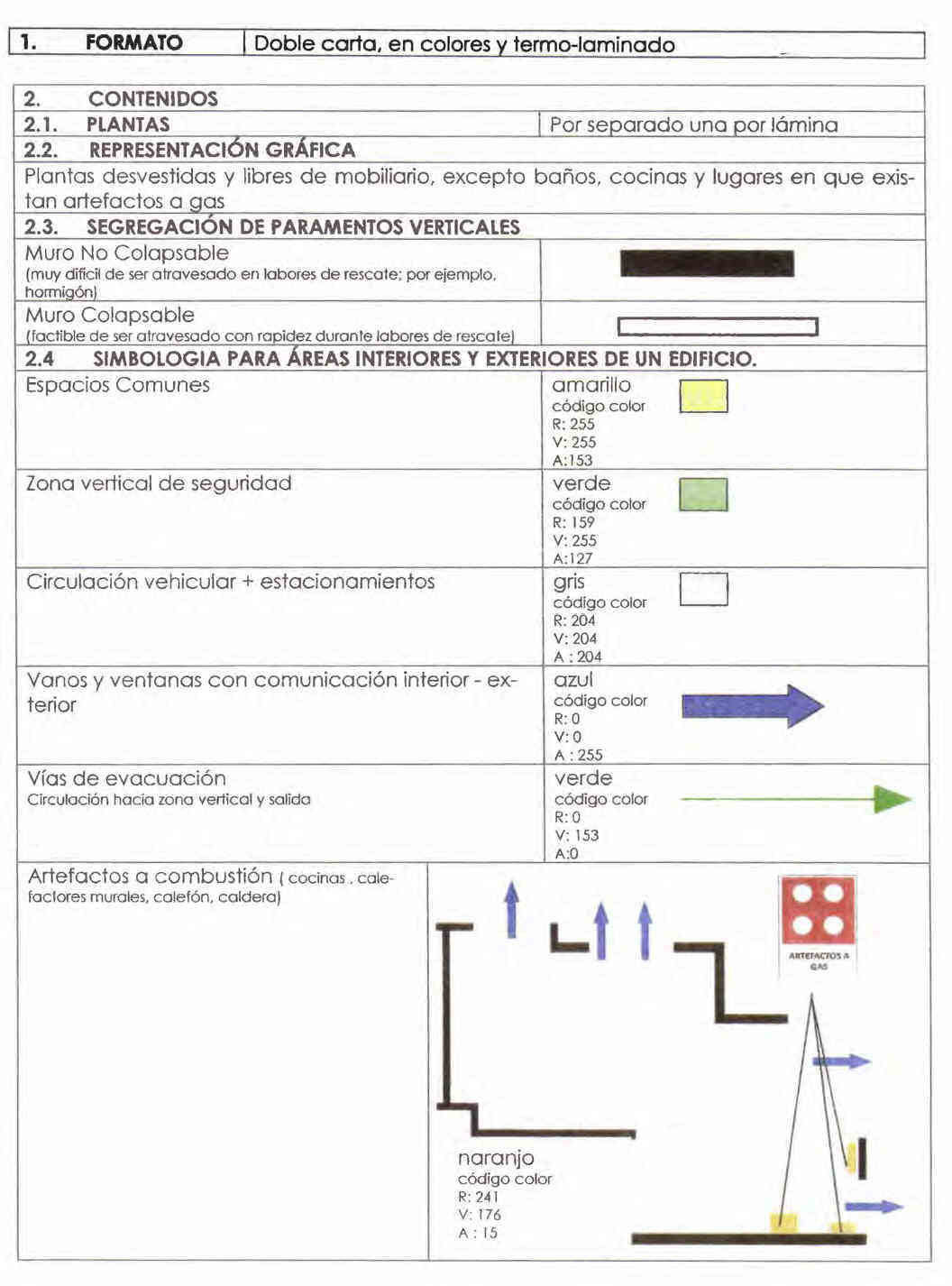 Los planos que complementan gráficamente la Ficha Técnica, deben ser esquemáticos, con simbología de fácil lectura, que permitan entregar información relevante al Cuerpo de Bomberos y a los ocupantes de un edificio para las actuaciones en caso de una emergencia.