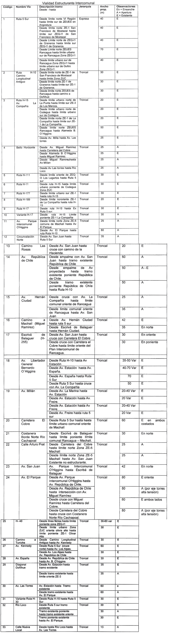 Artículo 2. El Plan Regulador Intercomunal Rancagua está formado por los siguientes documentos que constituyen un solo cuerpo legal:
