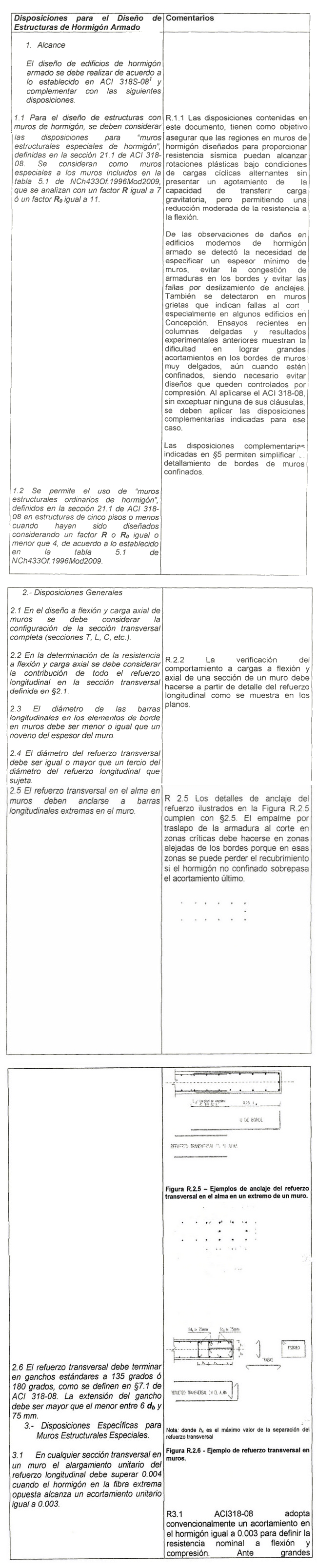 Artículo 3º.- Fíjanse las siguientes disposiciones para el diseño y cálculo de muros especiales de Hormigón Armado: