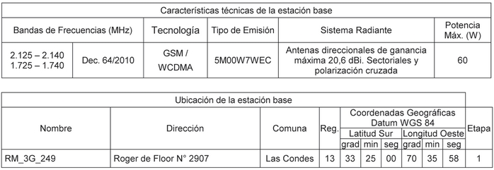 3. Apruébase el proyecto técnico base de la solicitud presentado por la concesionaria, en lo relacionado con los sistemas y equipos de telecomunicaciones autorizados en el presente decreto, conforme a las disposiciones técnico legales que rigen el servicio de telecomunicaciones concedido. La documentación respectiva quedará archivada en la Subsecretaría de Telecomunicaciones.