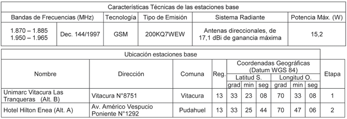 1. Autorízase a la concesionaria para instalar, operar y explotar dos (2) estaciones base.