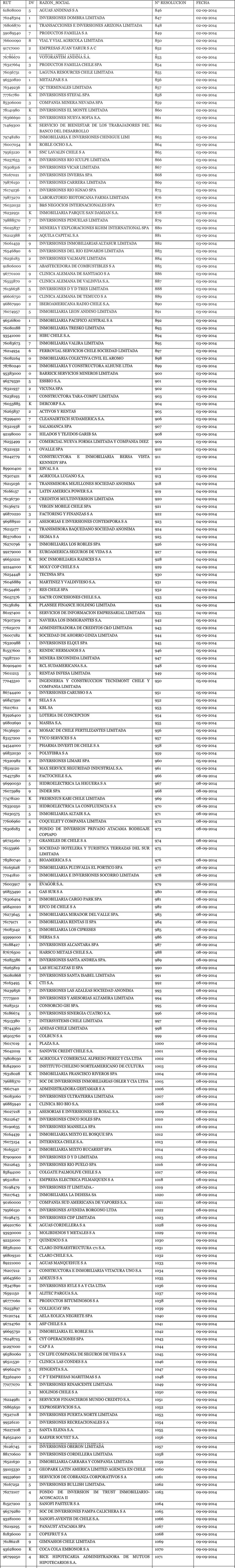 En virtud de lo ordenado por el artículo 58 de la ley Nº 19.880, se informa que se han acogido a la fecha los siguientes recursos de reposición interpuestos por instituciones incluidas en la Nómina que contiene la resolución Nº 197, de esta Superintendencia, de fecha 22 de julio de 2014, las que en consecuencia han quedado excluidas de dicho listado en virtud de los antecedentes que presentan, los que dan cuenta que no cumplen con los requisitos copulativos dispuestos en el artículo tercero transitorio de la ley Nº 20.715 para quedar sus operaciones sujetas a la fiscalización de este Organismo.