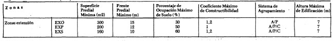 Zona de Extensión Urbana: Oriente, EXO; Poniente, EXP; Sur, EXS.