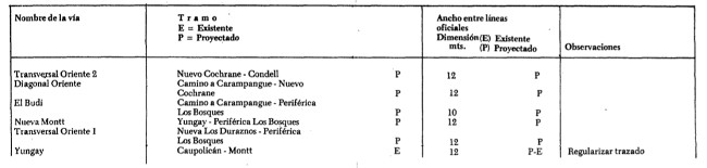 ARTICULO 20.- Las avenidas, calles, pasajes y, en general todas las vías públicas del Plan Regulador son las actualmente existentes, manteniendo sus anchos entre líneas oficiales, salvo aquellos casos en que expresamente se dispongan ensanches o aperturas de nuevas vías.