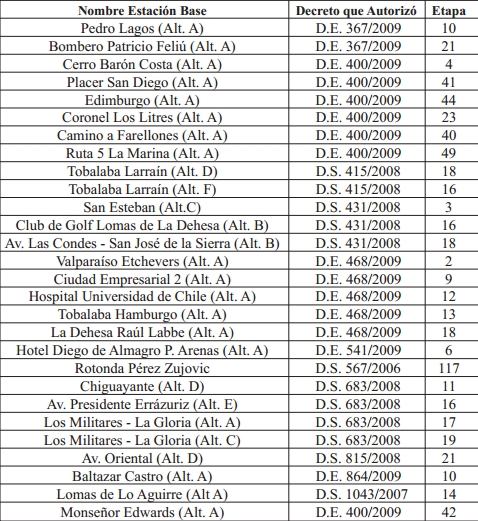f) Los decretos supremos Nº 278, de 1981; Nº 223, de 1989, y Nº 159, de 1993, todos del Ministerio de Transportes y Telecomunicaciones, que otorgaron las concesiones y sus modificaciones posteriores.