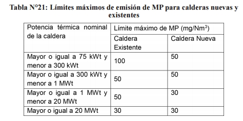 ii. Se prohibirá dentro de la zona saturada, durante las 24 horas, el funcionamiento de calderas con una potencia térmica mayor a 75 kWt que presenten emisiones mayores a 30 mg/m3N de material particulado.