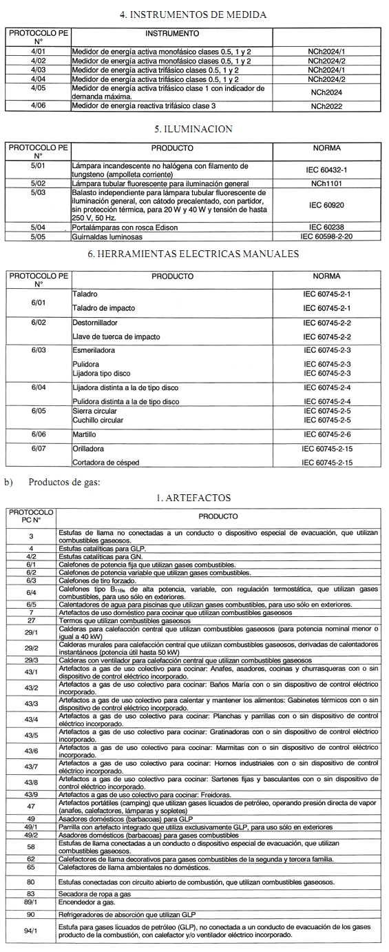 APRUEBA PROTOCOLOS DE ENSAYOS PARA LA CERTIFICACION DE LOS PRODUCTOS ELECTRICOS, DE GAS Y DE COMBUSTIBLES LIQUIDOS QUE SEÑALA