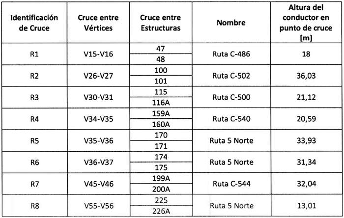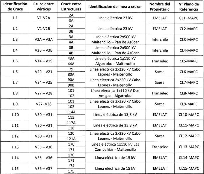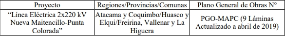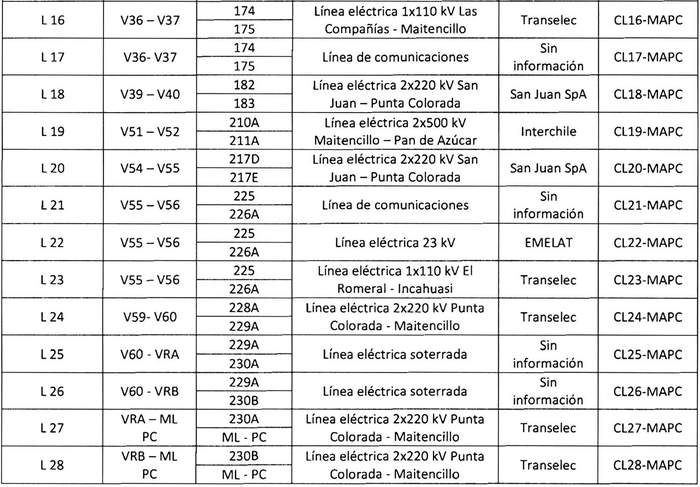 En su recorrido, la "Línea Eléctrica 2x220 kV Nueva Maitencillo-Punta Colorada" afectará las líneas eléctricas, obras e instalaciones existentes que se indican a continuación: