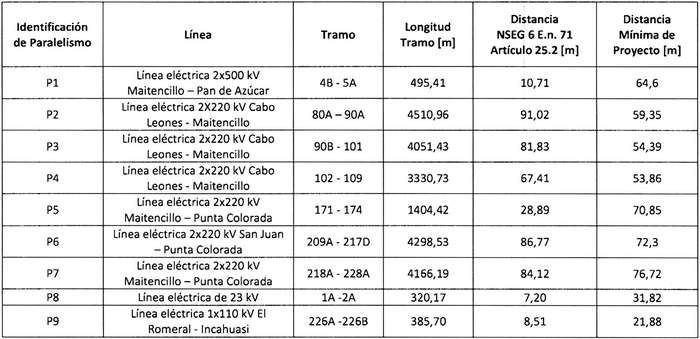 e) Paralelismos con otras líneas eléctricas: