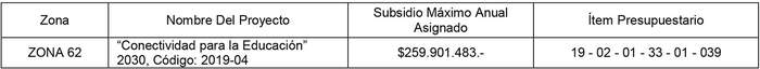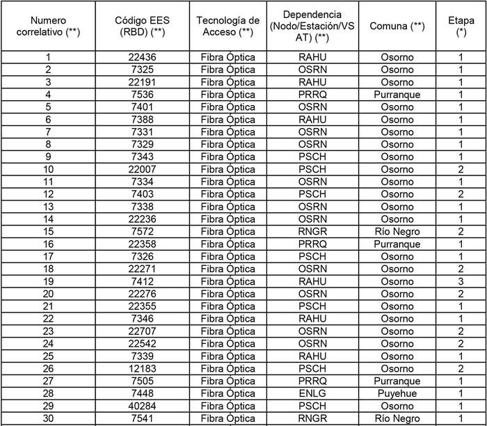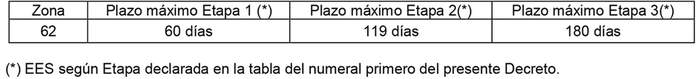 (*) En número de referencia a la Etapa corresponde a la fase en cuyo plazo máximo deberá prestarse el Servicio de Conectividad en los EES que pertenecen a la Zona 62 conforme a lo indicado en el resuelvo octavo de la resolución exenta Nº 432, de fecha 01.03.2021, de la Subsecretaría de Telecomunicaciones.