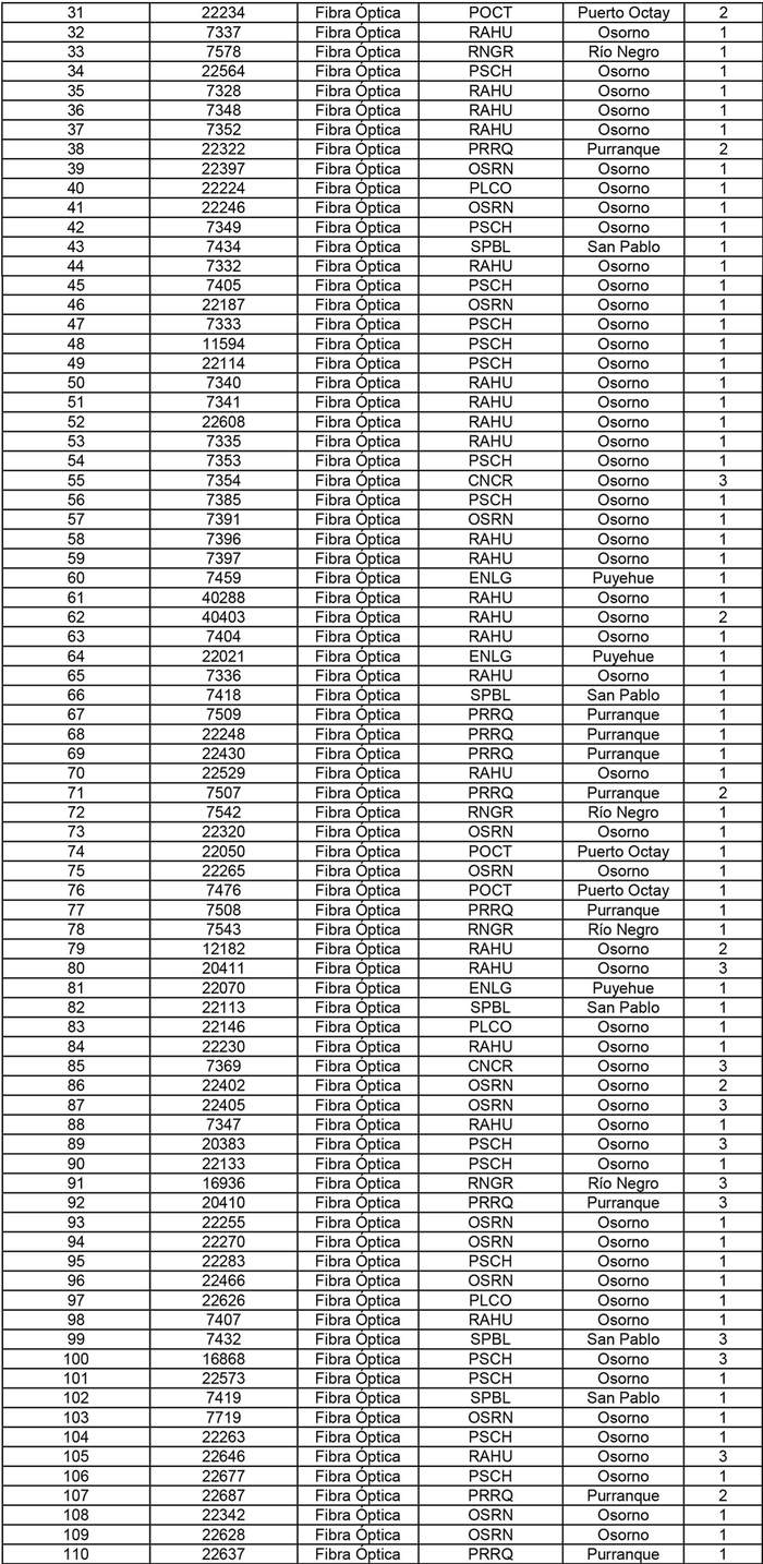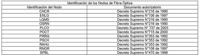 1.3 Para la red de acceso a los EES a implementarse a través de enlaces de Fibra Óptica de acuerdo al detalle informado en la tabla del numeral primero de este decreto, tales enlaces se conectarán a los Nodos de Fibra Óptica que se indican a continuación, serán propios o de terceros debidamente autorizados.