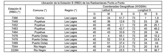 (*) No considera Estaciones individualizadas por ubicación en la tabla del punto 1.1 de este decreto.