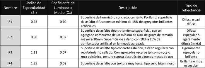 Tabla 3. Clasificación de superficie de calzada según serie "R"
