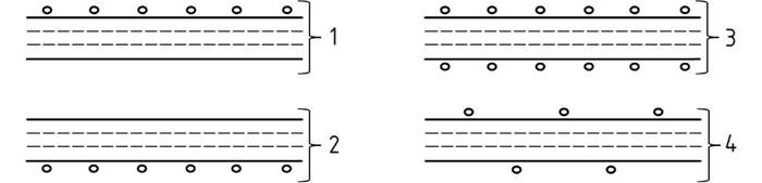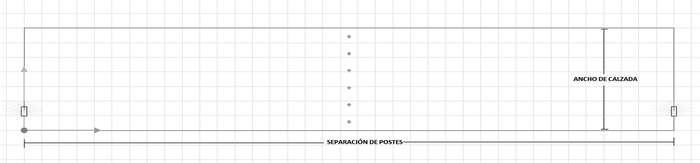 Para evaluar que la iluminancia sea al menos de 3,0 lux en un punto a 1,5 metros sobre el plano horizontal de la calzada y equidistante entre parejas de luminarias que se encuentren separadas a una misma distancia, se considerarán los archivos digitales "IES" para cada Caso Tipo, tomando una trama de cálculo con una disposición de 1x3 puntos de cálculo para cada carril de la vía a 1,5 [m] (por ejemplo, 1 carril, trama de 1x3; 2 carriles, trama de 1x6; 3 carriles, trama de 1x9), como se muestra en el ejemplo de la Figura 3.