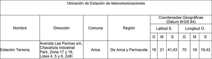 1. Autorízase la dirección y coordenadas geográficas de una (1) Estación Maestra satelital, autorizada por decreto supremo Nº 123 de 2020, del Ministerio de Transportes y Telecomunicaciones, según se indica a continuación: