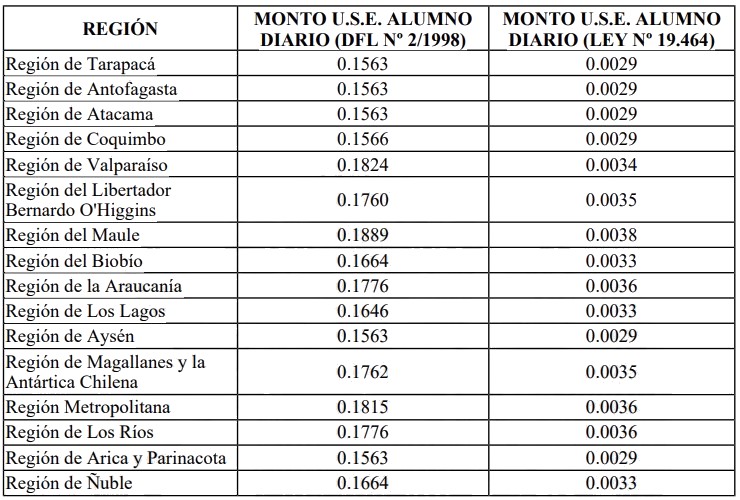 Artículo 3º: La Unidad Regional de Subvenciones respectiva procederá a efectuar los pagos correspondientes por los conceptos señalados en el artículo 1º, conforme al decreto Nº 8.144, de 1980, del Ministerio de Educación.