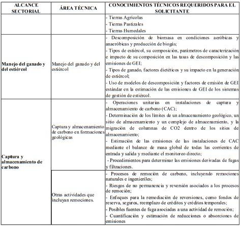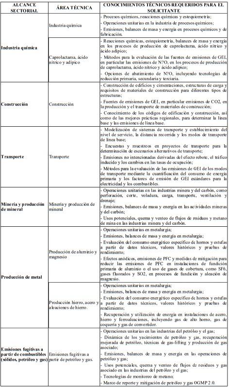 Tabla 2: Conocimientos técnicos requeridos para el solicitante.