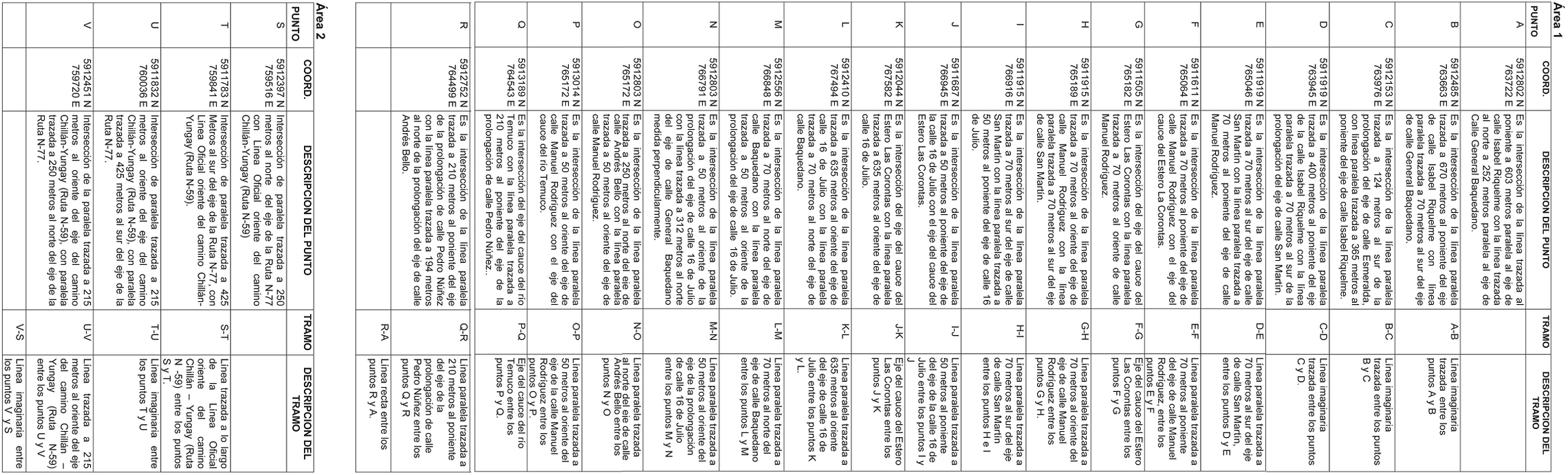 ARTÍCULO 6.- LÍMITE URBANO. El límite urbano del área reglamentada por el presente Plan Regulador Comunal de El Carmen, enunciado en el Artículo 3 de esta Ordenanza, se define de conformidad con la descripción de puntos y tramos que se detalla a continuación: