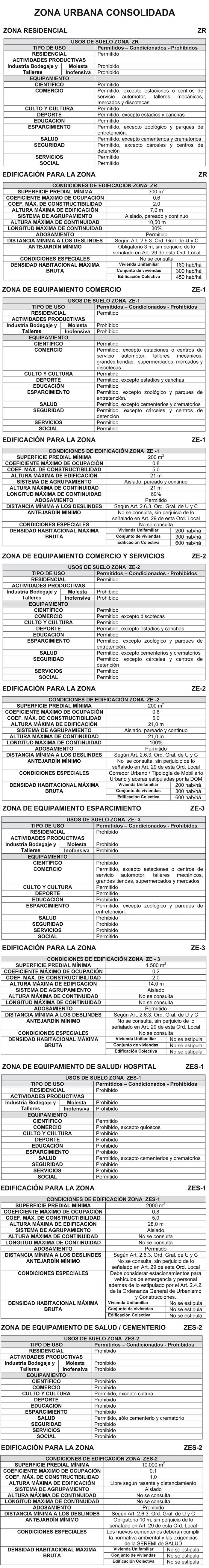 El presente Plan Regulador Comunal comprende las siguientes macro-zonas atendiendo a su grado de consolidación: