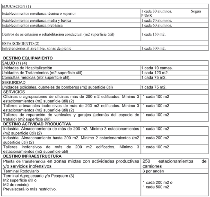 Las escalas se dividirán de acuerdo a la carga de ocupación y cantidad de estacionamientos requeridos, y su ubicación estará condicionada a la categoría de la vía que enfrentan y por la cual acceden, distinguiéndose las siguientes cuatro escalas: equipamiento mayor, mediano, menor y básico, que se encuentran definidas en el Artículo 2.1.36 de la Ordenanza General de Urbanismo y Construcciones.