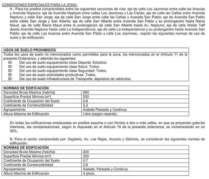Párrafo 2. Usos de Suelo y Normas Específicas por Zona.