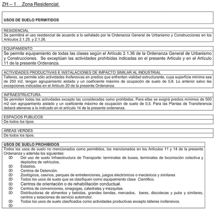 Asimismo, según se establece en el Artículo 2.1.26. de la Ordenanza General de Urbanismo y Construcciones, las viviendas podrán consultar el funcionamiento de pequeños comercios, industrias artesanales o el ejercicio de una actividad profesional, en tanto su principal destino subsista como habitacional y salvo que la presente ordenanza defina porcentajes menores. Con todo, cuando las actividades complementarias a la vivienda sobrepasen la mitad de la superficie edificada de la misma, dichas actividades deberán cumplir con los usos de suelo permitidos por esta Ordenanza para la zona respectiva.