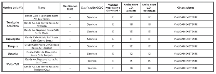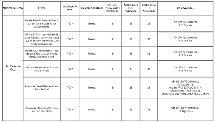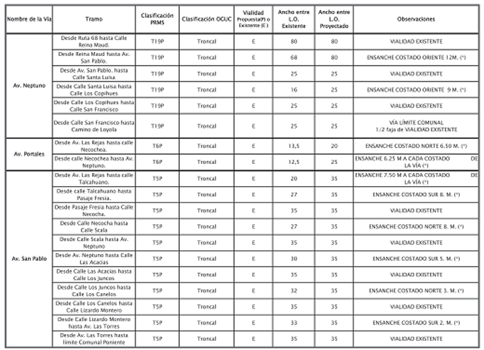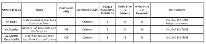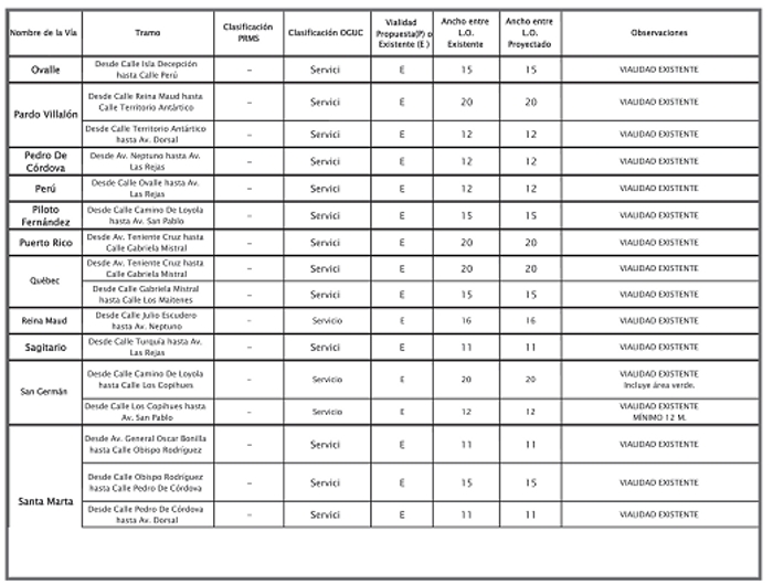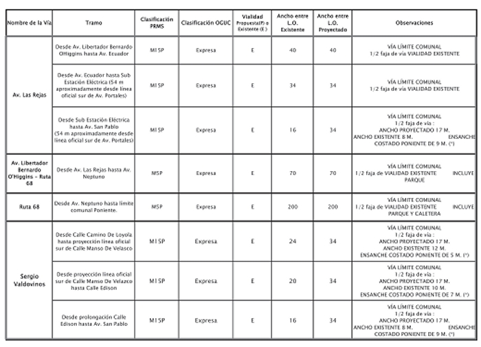 Artículo 34. Definición de la Red Vial Estructurante Comunal. Los siguientes Cuadros definen la Red Vial Estructurante de la comuna de Lo Prado y sus características específicas.