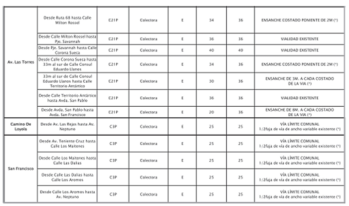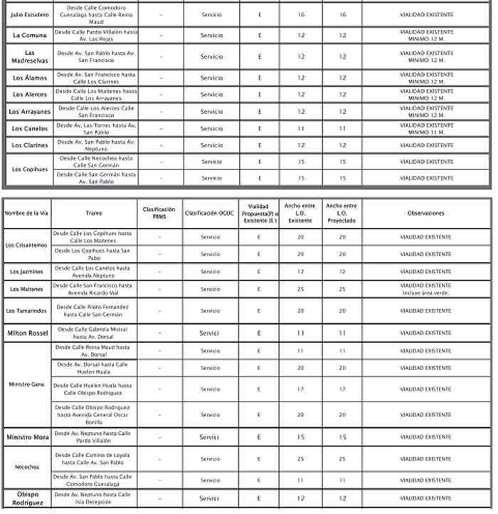Las vías públicas comunales mantienen los anchos existentes, excepto las que se señalen en el Artículo 34.
