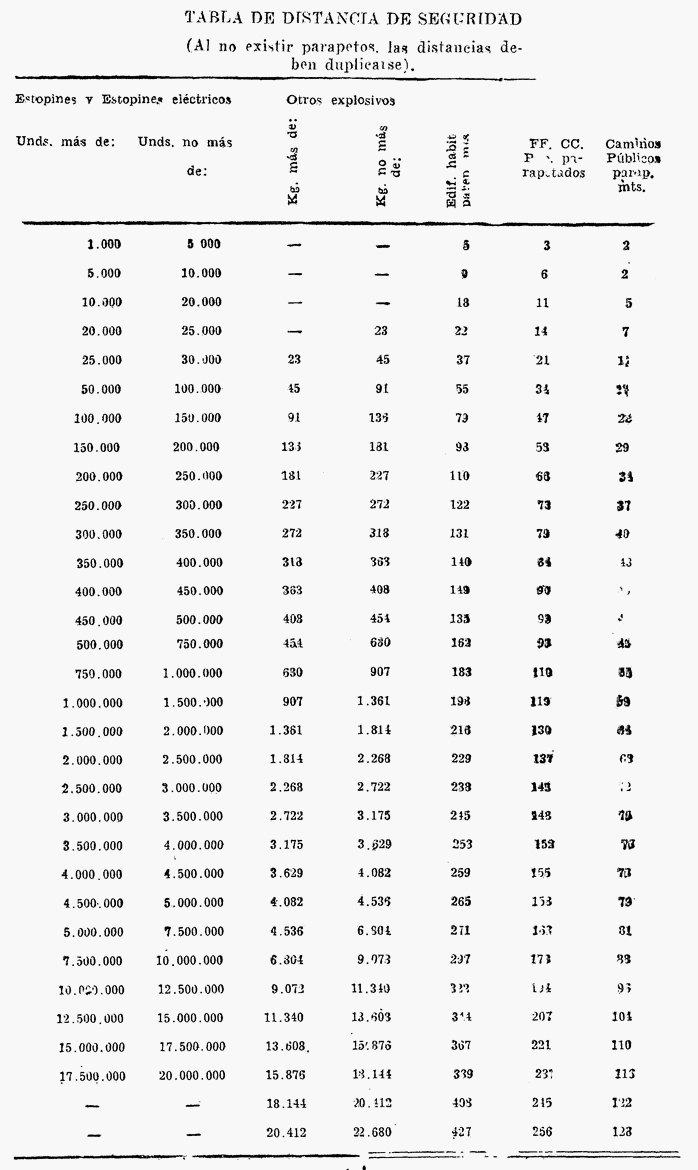 Fulminantes y Estopines: 10.000. En hoyos de 61. cm. de profundidad por 30 cm. de ancho, por el largo adecuado