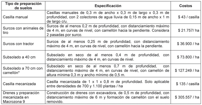 A este valor se le deberá agregar los componentes de preparación de suelo y cerco, que se detallan en el "Procedimiento para la determinación del costo de forestación", contenido en esta misma tabla.