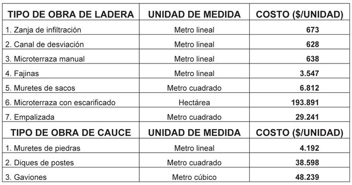 CUADRO 1.- COSTOS DE LAS OBRAS DE RECUPERACIÓN DE SUELOS DEGRADADOS