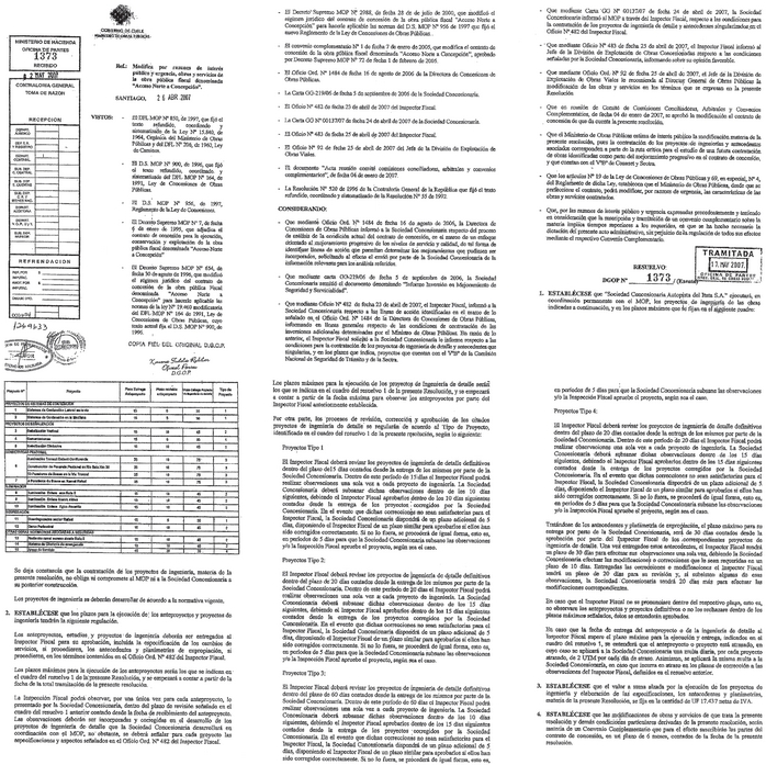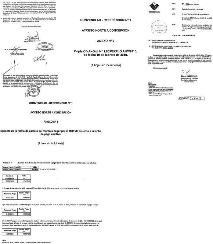 - El Decreto Supremo MOP Nº 7, de fecha 6 de enero de 1995, que adjudicó el contrato de concesión para la ejecución, conservación y explotación de la obra pública fiscal denominada "Acceso Norte a Concepción".