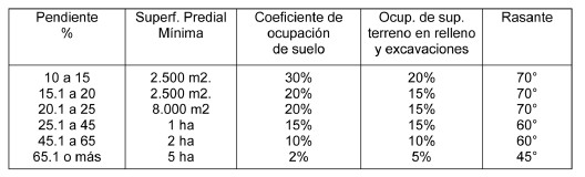 40 bis. Vías y Zonas en que se autorizan Cambios de Destino
