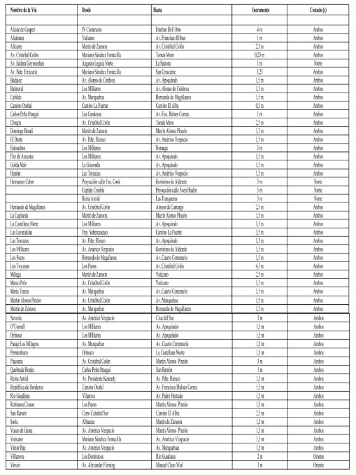 Avda. Cristóbal Colón, ambas aceras, entre el límite poniente de la zona U-C1 "Rotonda Atenas" y Mariano Sánchez Fontecilla.