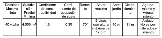 5. En predios que pertenezcan a las zonas U-V1 o U-V2, que constituyan limite con Zonas U-C1, U-C2, U-VO o E-Ee1 y que además se encuentren graficadas en el plano MRCLC - 02 Láminas Nº 1 y Nº 2, de acuerdo a lo señalado en el artículo 41.