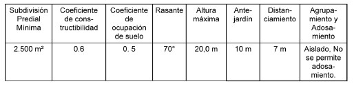 Artículo 40. Cuadros de Zonas de Uso de Suelo