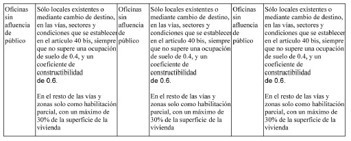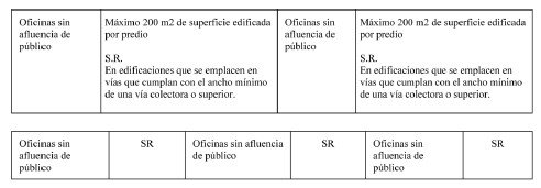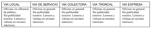 d2) En el cuadro a continuación del párrafo segundo elimínase la celda superior que señala "Vía Local, de Servicio y Colectora" y elimínase en la columna de "Actividad" la expresión "Oficinas de profesionales en general: abogados, arquitectos, ingenieros, médicos, dentistas y similares.", reemplázase en la tercera columna la palabra "Condición" por "Condiciones" y elimínase la oración "Se prohíben los demás giros."