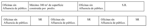o2) En la fila correspondiente a la clase "Servicios", actividad "Oficinas Profesionales", reemplázase la expresión "Oficinas Profesionales" por "Oficinas sin afluencia de público".
