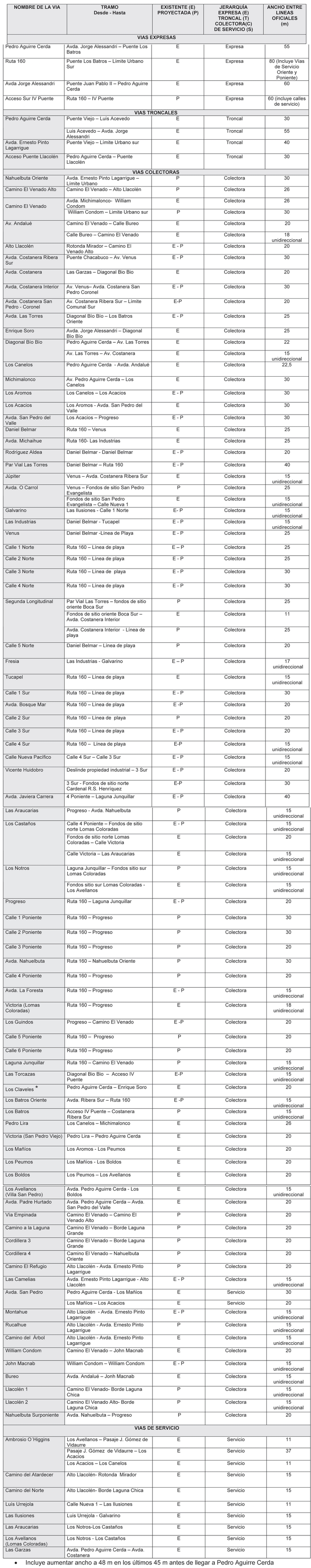 ARTÍCULO 4.- VIALIDAD ESTRUCTURANTE. La vialidad estructurante graficada en el Plano PRCSP-1 y sus anchos entre líneas oficiales, está constituida por las vías indicadas en el siguiente cuadro: