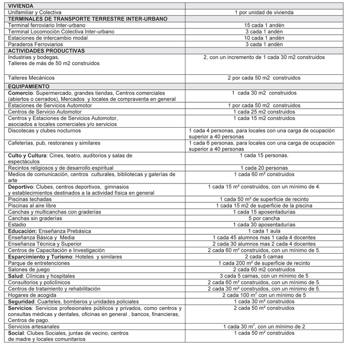 . ARTÍCULO 5.- ESTACIONAMIENTOS: Al interior del límite urbano de San Pedro de la Paz se establecen los siguientes estándares de estacionamiento: